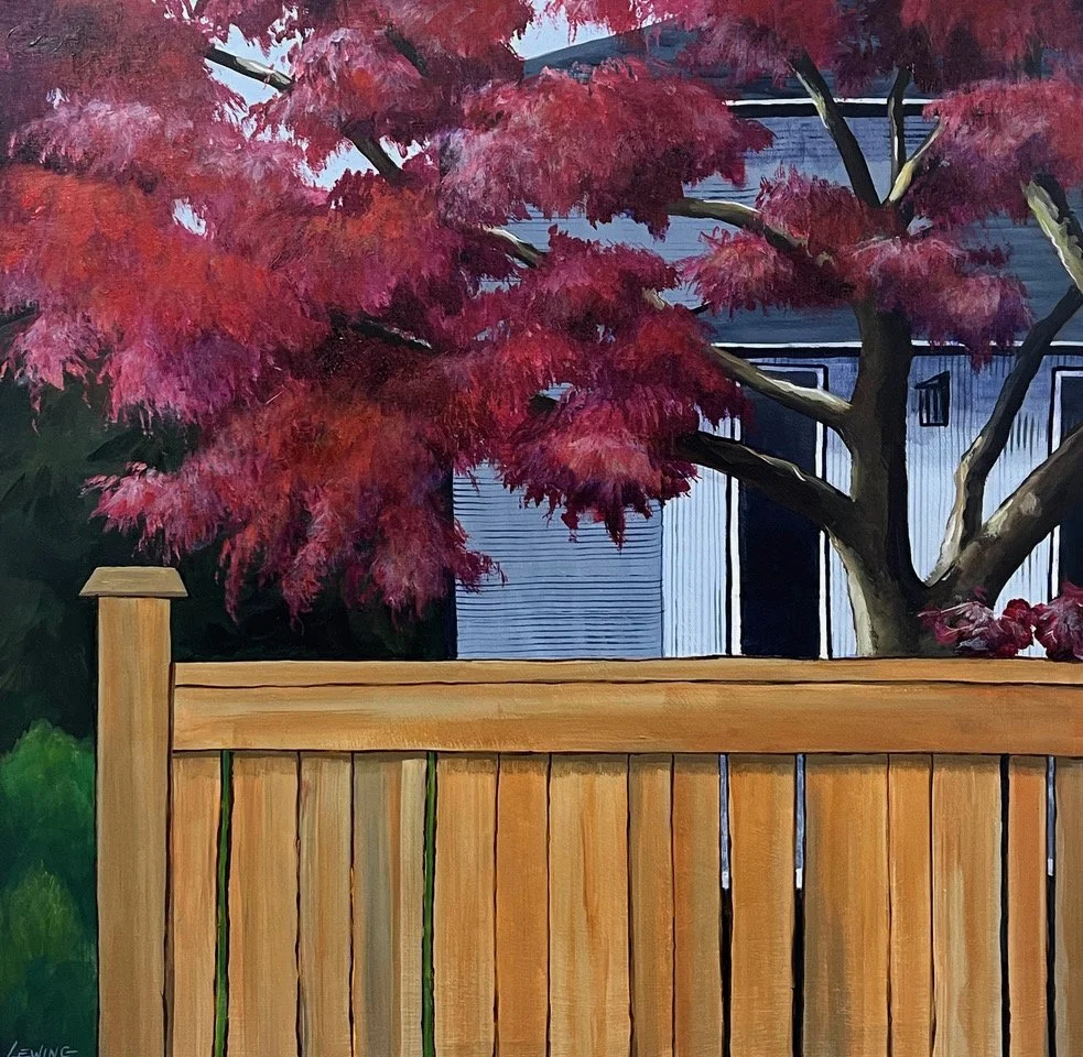 "Hillwood Fence" by Paul Lewing, acrylic on canvas, 20”x20”